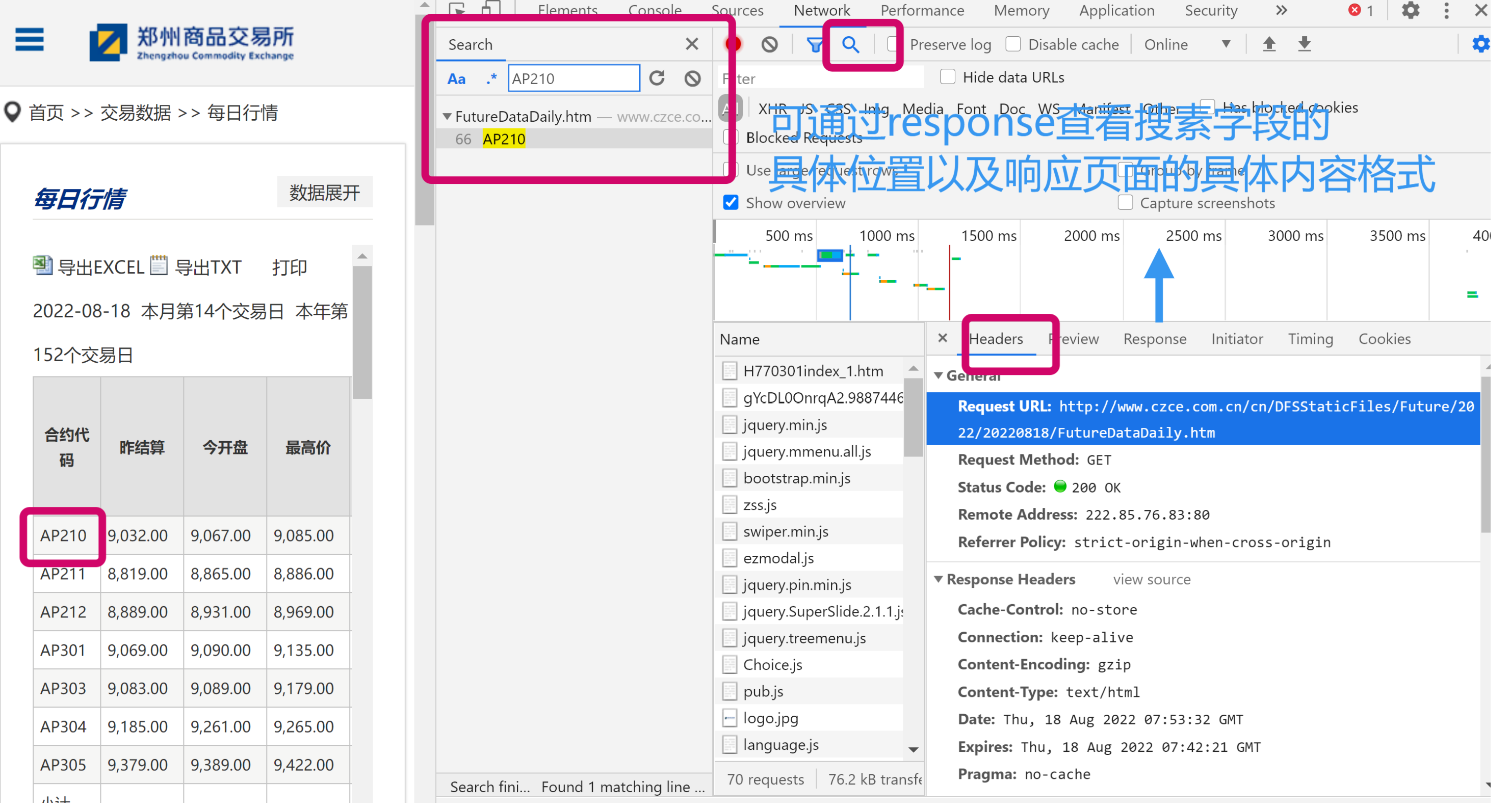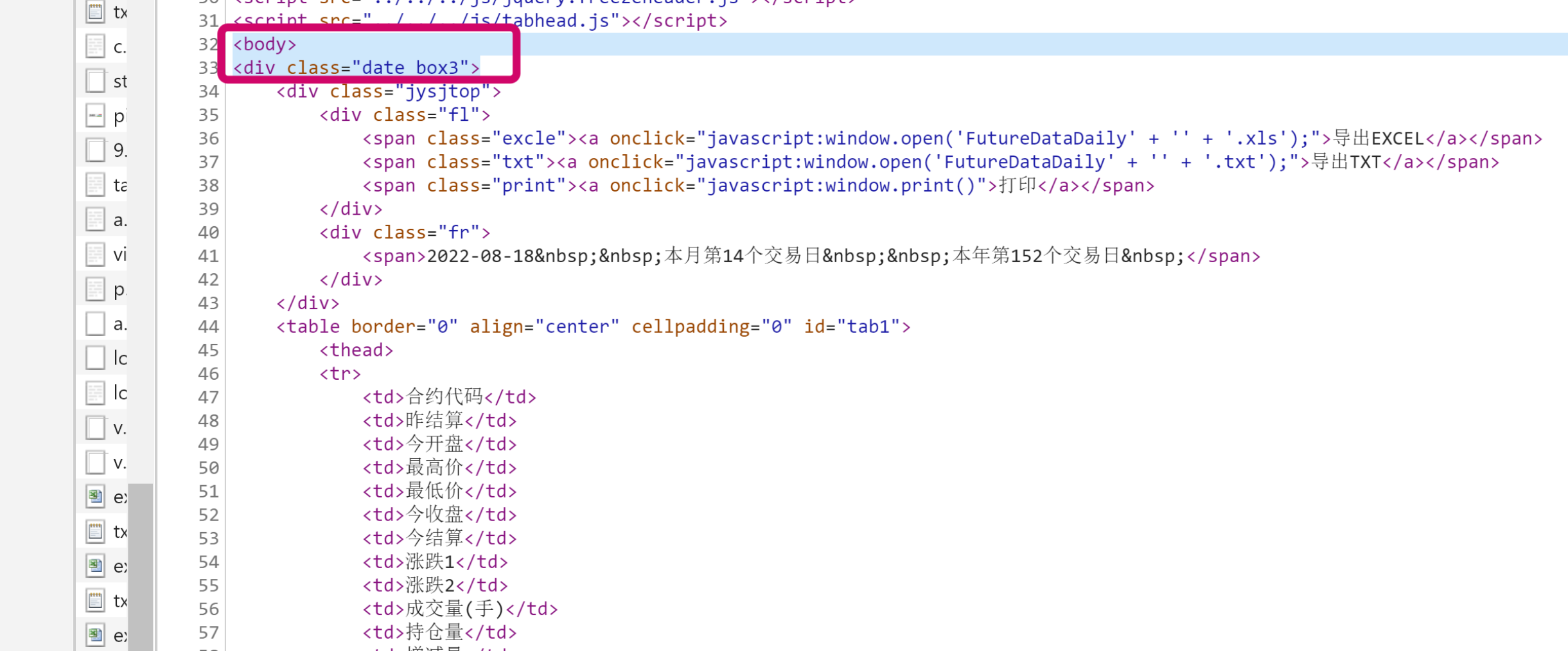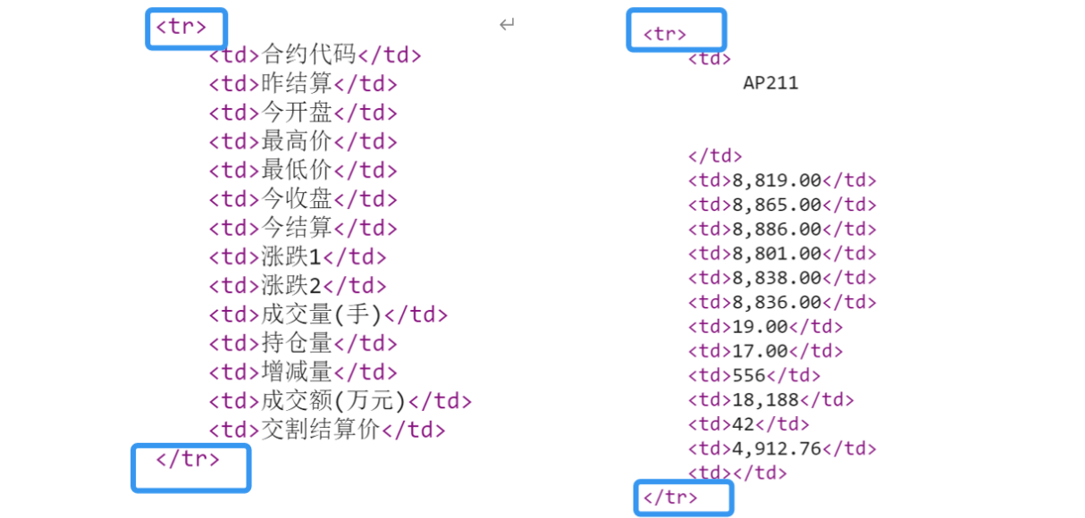 而对于郑商所而言我们可以看到响应的存储形式为表格的形式,数据都是存在<body>标签下。
