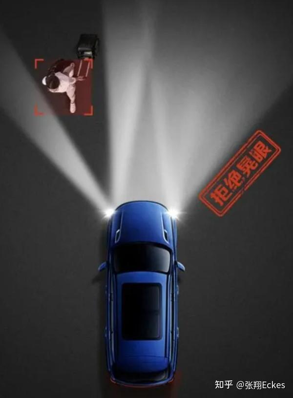 2、自适应远近光, 在夜间开车时,车辆大灯通过传感器判断当时的车辆、人员情况,自动切换远近光灯,让你更专注于驾驶,无需频繁切换远近光灯。