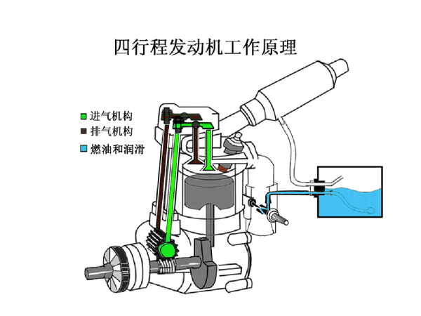 气缸: 圆筒形金属机件,是活塞运动的轨道,燃气在其中燃烧及膨胀。