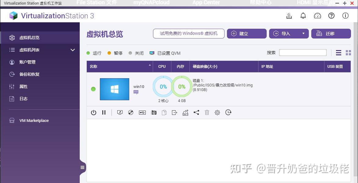 ▼Virtualization Station(已下简称VL Station)是威联通特有的虚拟机部署应用,属于QTS系统下绝对的良心应用。毕竟大多数NAS系统需要购买授权以获得虚拟机支持或是解锁更多虚拟机数量或者是更好的性能,很多轻NAS系统都不支持虚拟机。