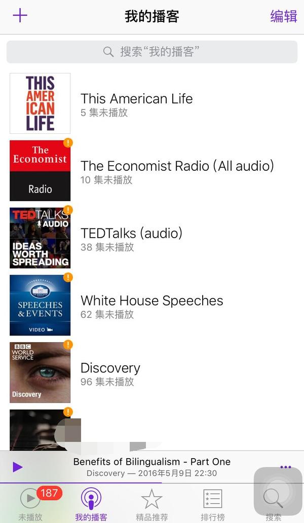 苹果的播客上很多节目都值得推荐,下面是我播客里保存的节目: