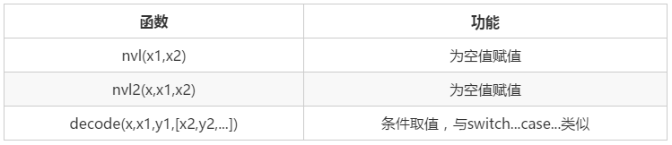 nvl(x1,x2)=\begin{cases} x1,&x1\ne NULL\\ x2,&x1=NULL \end{cases}\\ nvl2(x,x1,x2)=\begin{cases} x1,&x\ne NULL\\ x2,&x=NULL \end{cases}