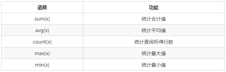 SELECT SUM(sal),AVG(sal),COUNT(empno),MAX(sal),MIN(sal) FROM emp;
