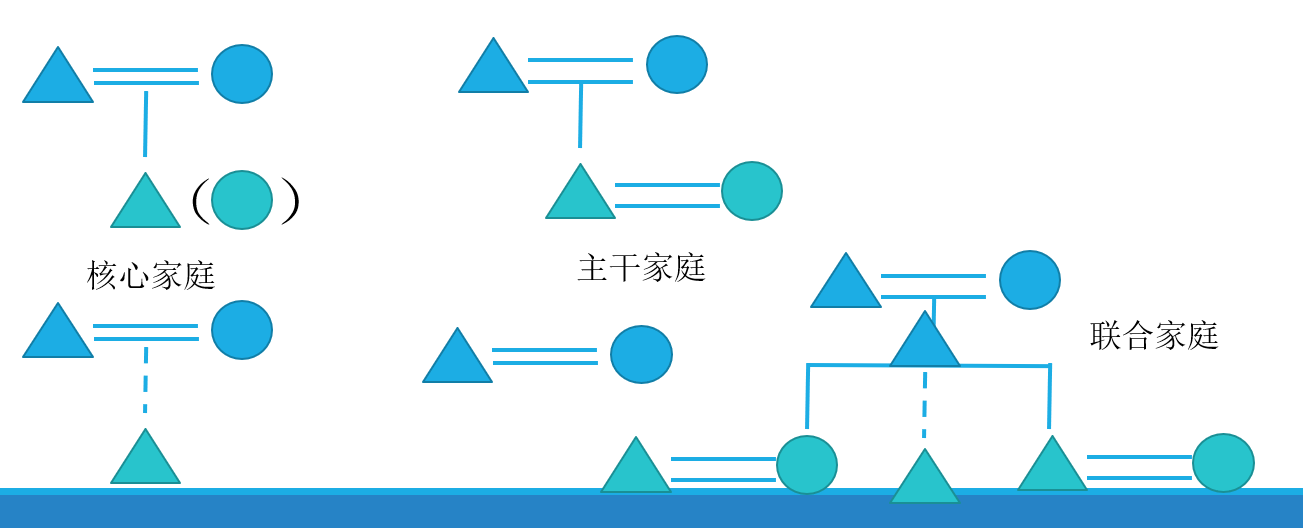 3、联合家庭:指父母或父母的一方与多个已婚子女,或者还包括其他亲属一起居住、共同生活的家庭