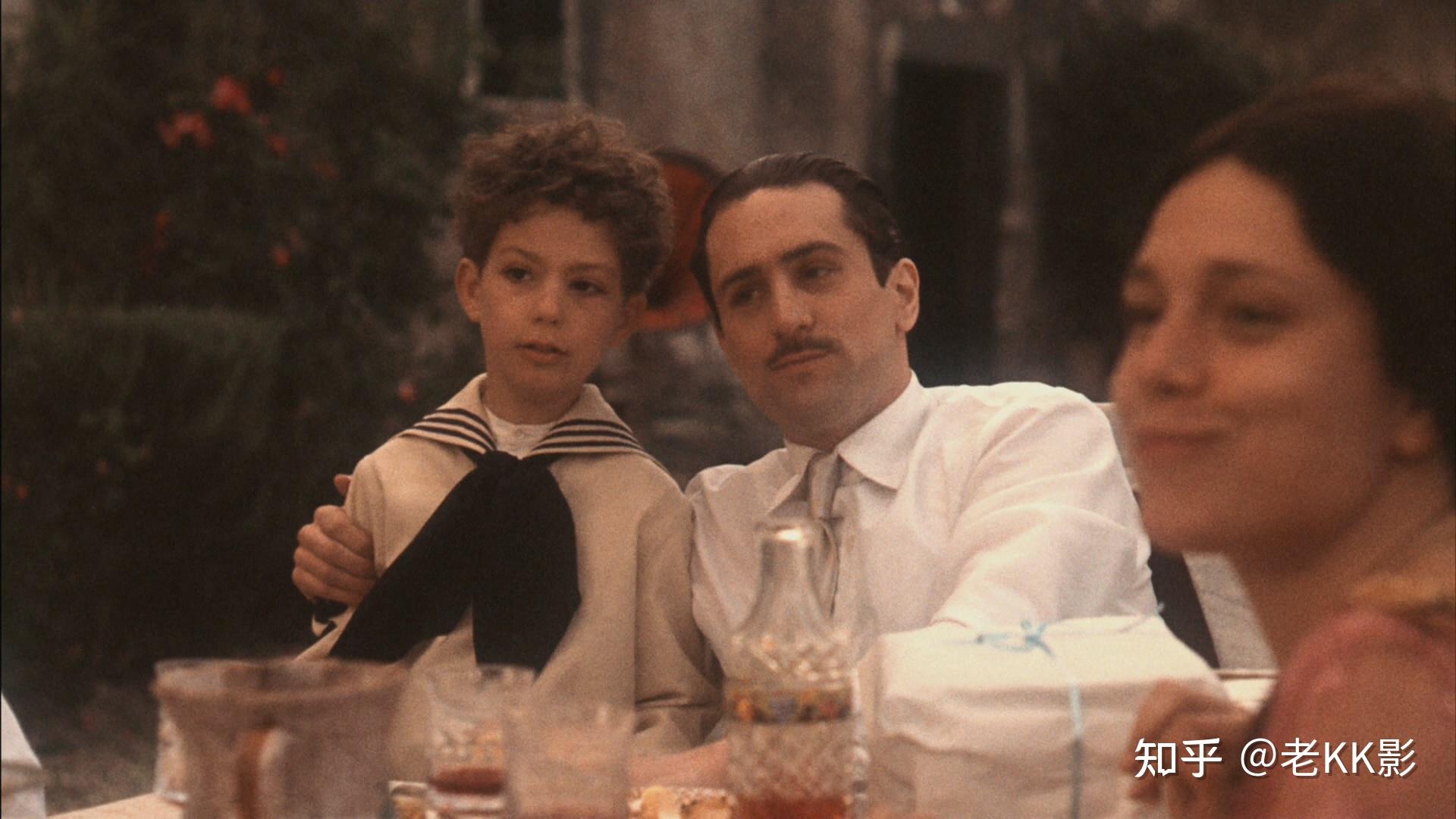 到了第3部女儿索菲亚·科波拉是第一女主,科波拉在教父三部曲中一直有使用亲戚或朋友的习惯,下面教父2中的这个场景,坐在帕西诺后面的就是导演的叔叔。