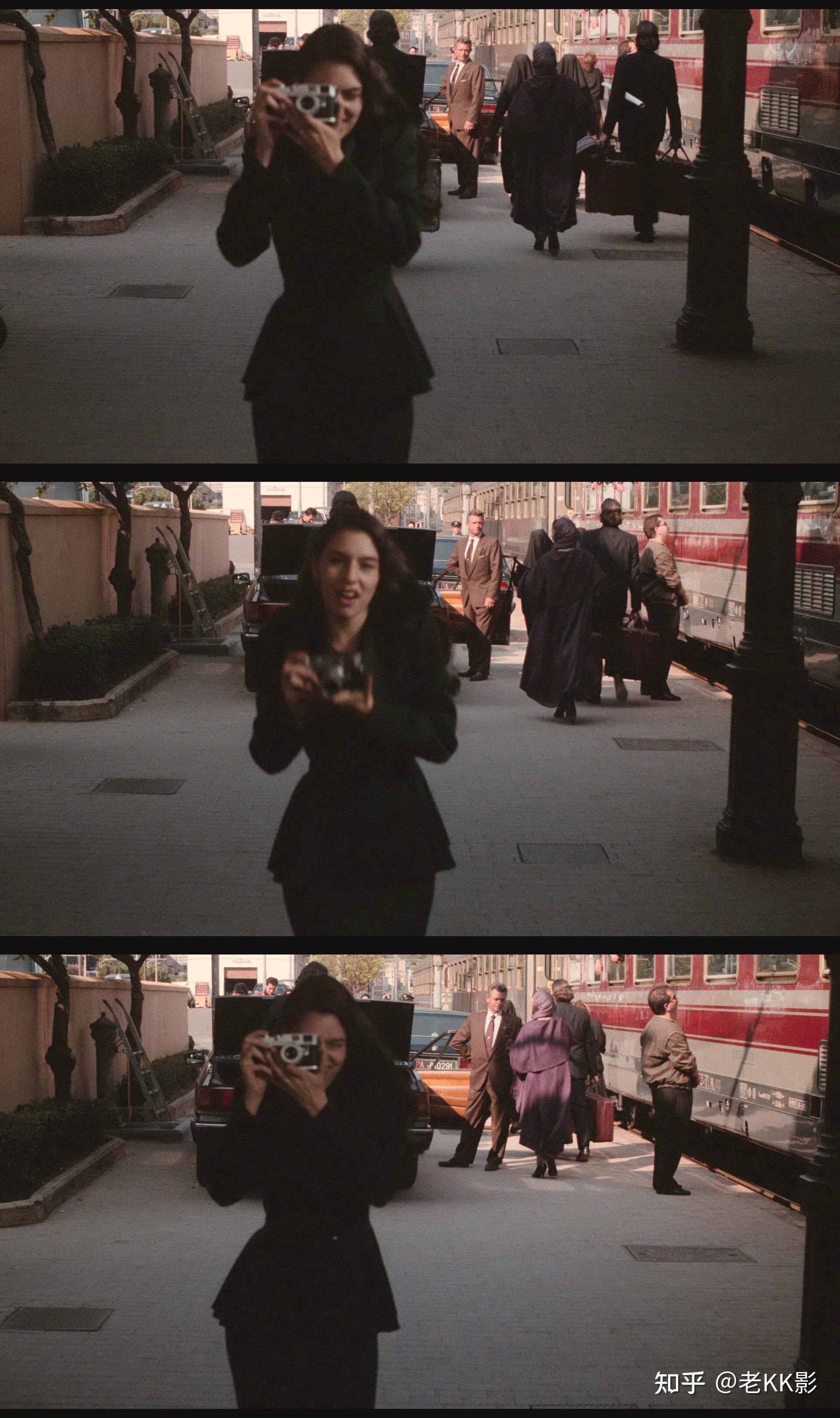 在西西里的火车站,玛丽给迈克尔和凯拍照,镜头明显跑焦了,对焦在了背景的奈尔身上和车牌上,虚了前面这个画面的唯一主角玛丽。