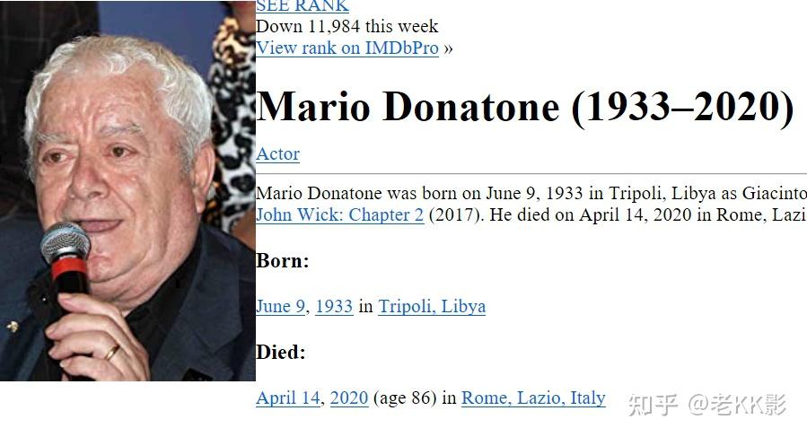 Mario Donatone身高1.86,生于利比亚,2020年4月卒于罗马,2020走了很多电影人,Mario Donatone是我码字时才知道的,莫斯卡,一路走好!