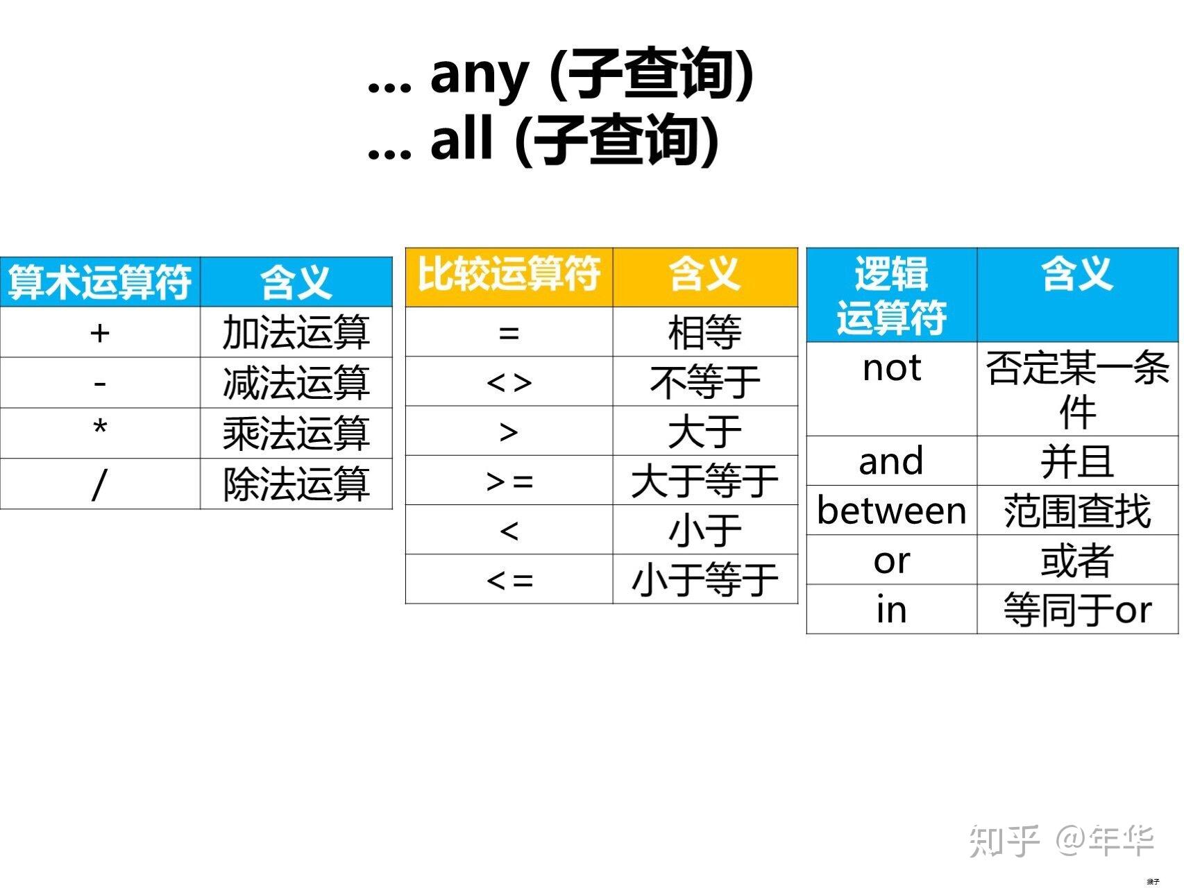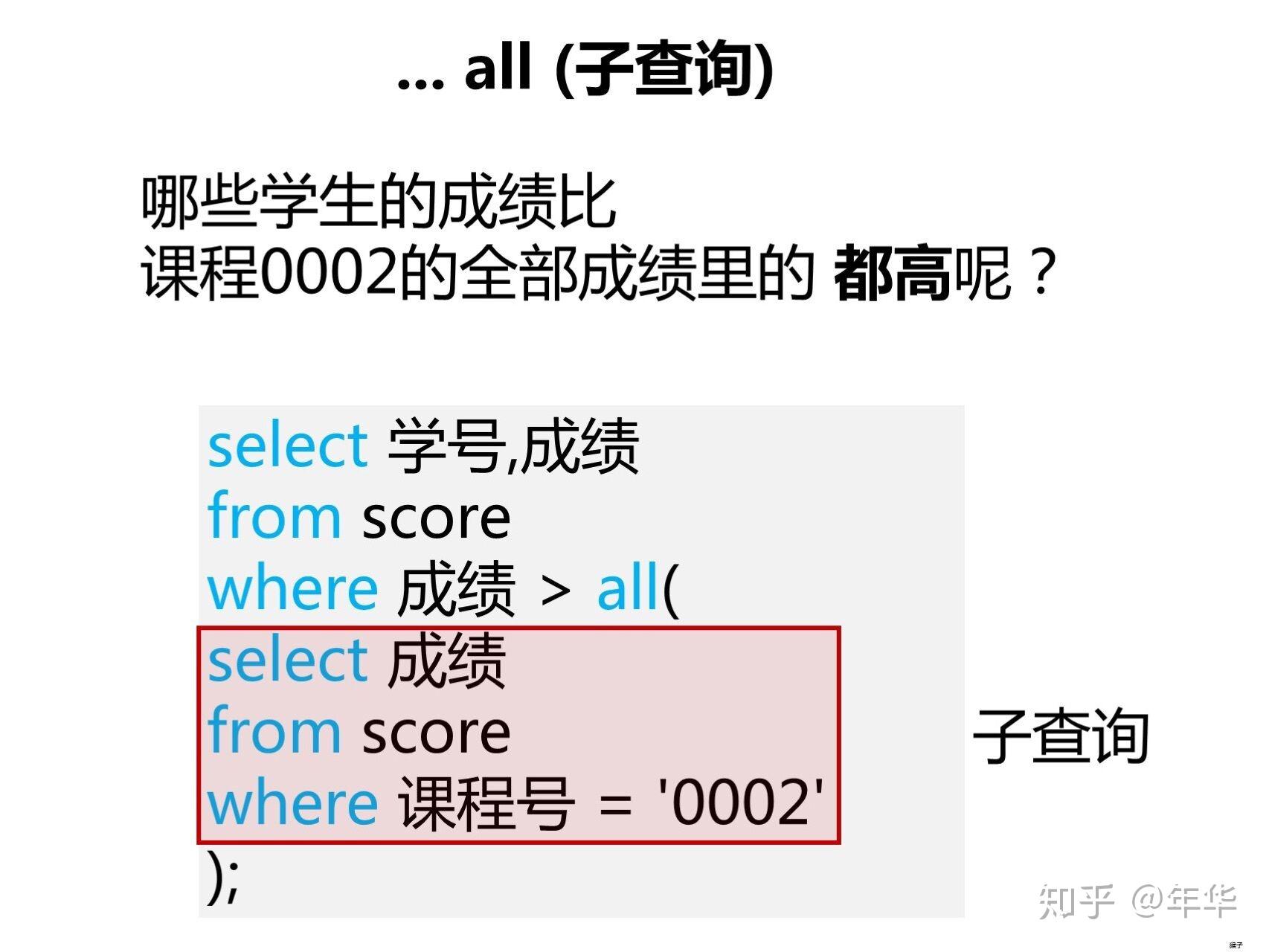 /*ALL 对一个列表某行>=或>或<或<=充當比較。*/