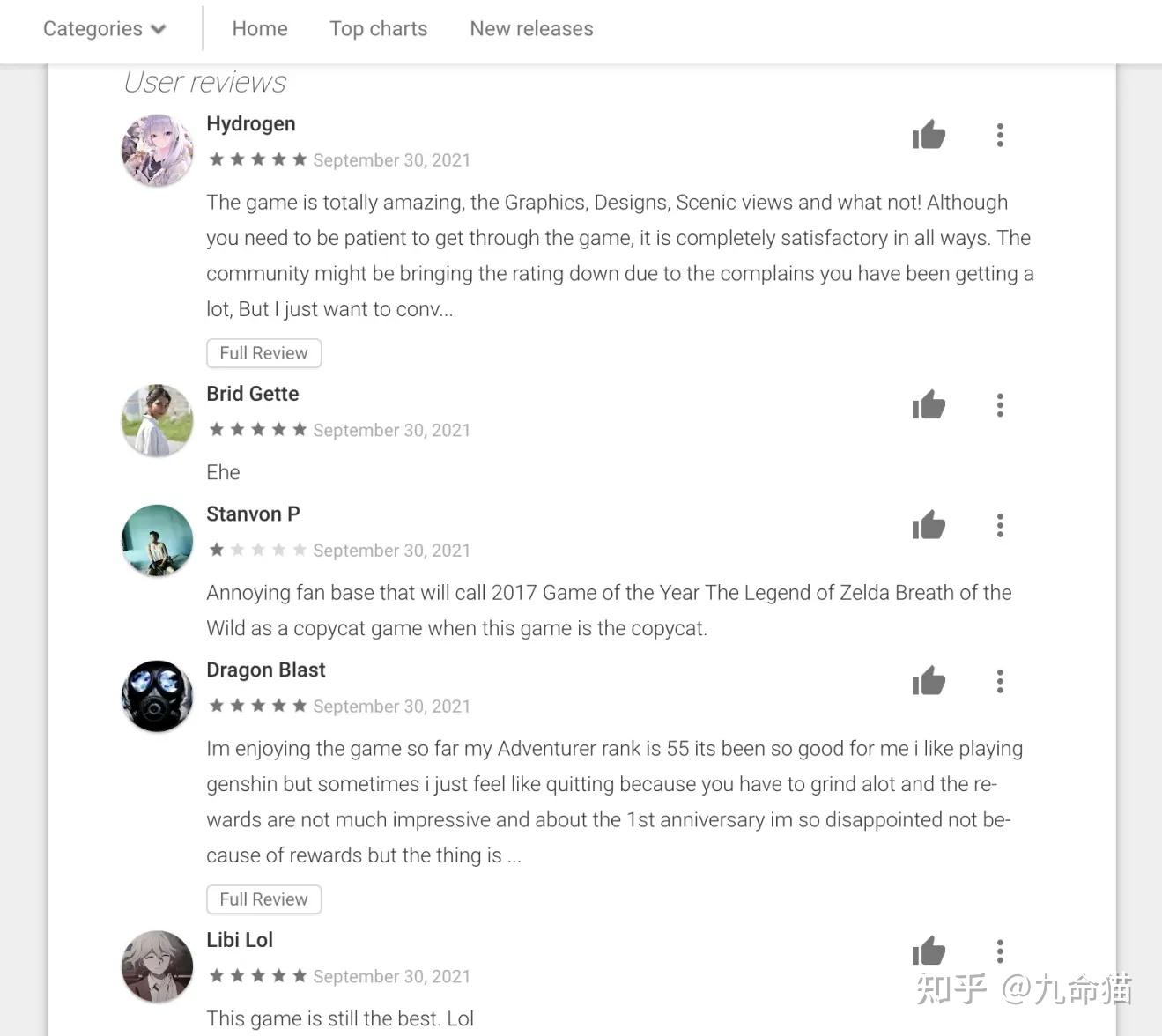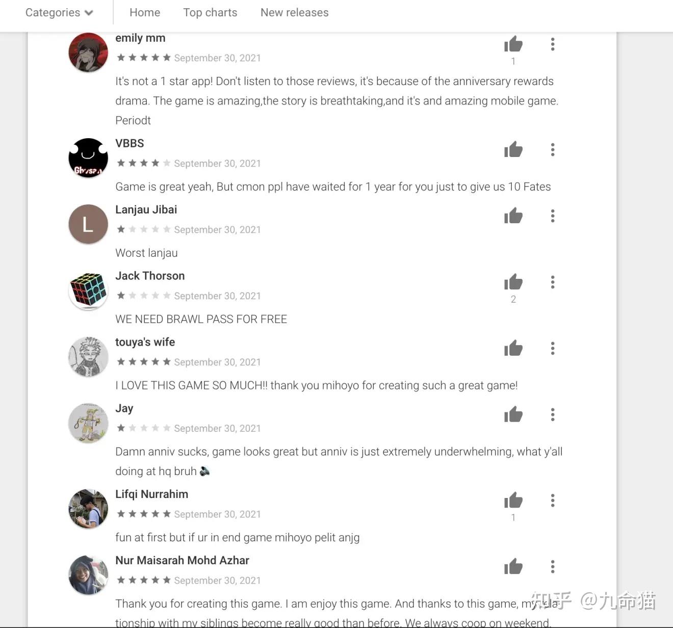 当前的Google Play评论区一览,5星好评的字数与质量显然比1星差评更高,部分差评有中文名。