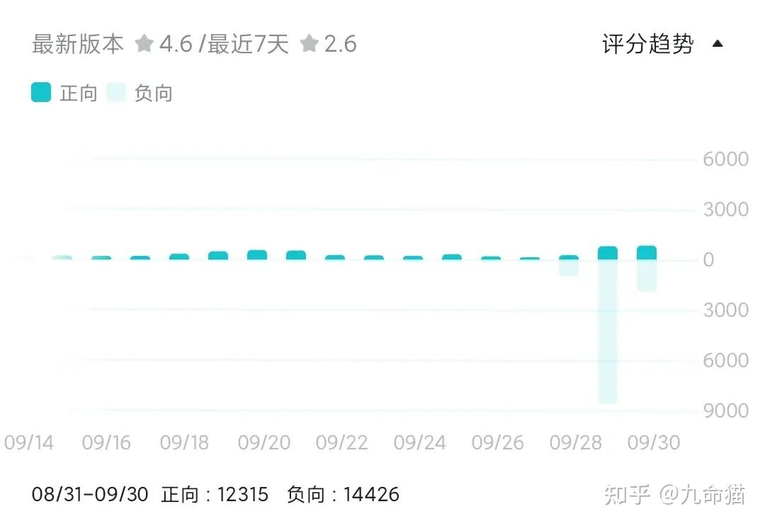 进入2021年9月之后,周年庆节奏开始,评分开始急剧下降,一度突破了3.0,但是评论数量还是保持稳定,节奏基本还只是小部分人的狂欢,大部分人只是心有不满。