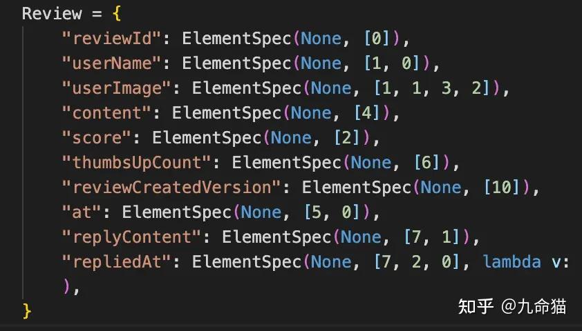 能够爬取到的字段如图所示,有评论ID、用户名、用户头像、评论内容、【 评分】 、赞数、【 用户评论时的APP版本号】 、【 评论时间】 、回复内容、回复时间。 加粗 标识的为此次用到的字段名。