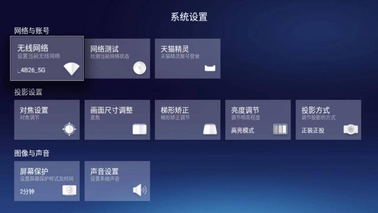 设置方面,天猫精灵小白盒也是非常齐全,包括对焦设置、画面尺寸调整、梯形矫正、亮度调节等等,都可以根据个人所需来进行选择设定,都是以简单的易看模式,操作起来几乎无难度。