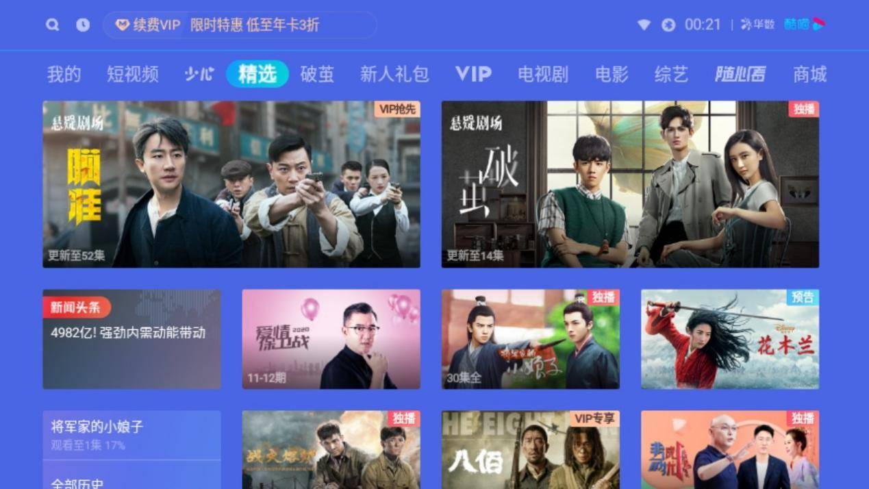 了解完天猫精灵小白盒的外观细节设计和亮点功能,接下来看看系统方面,基于Android 8.1深度定制,界面也是简单易操作布局,针对每个不同类型也进行了划分,包括少儿、精选、电视剧、电影、综艺等等,几乎涵盖了大部分内容资源,足够满足日常观看需求。