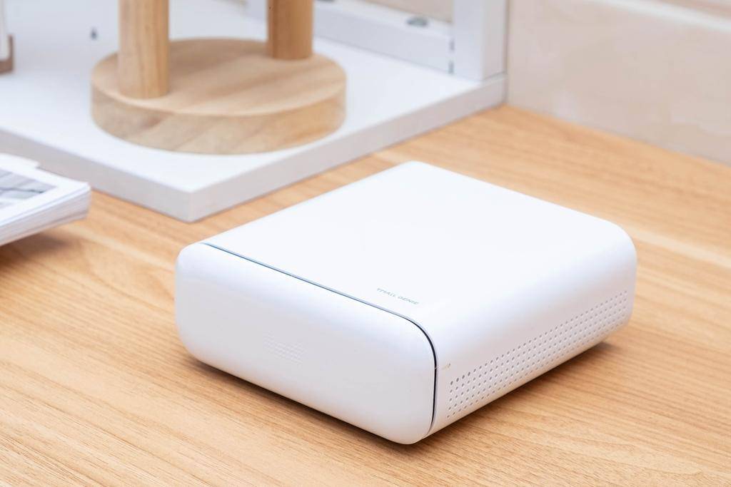 在拆开外包装的时候,笔者还是被这样高颜值的外观所吸引,通体白色配色,造型非常的小巧,仅有122x123.45x51.15mm的尺寸,这样的体积设计,无疑就是给携带提供了方便,可以随意放入包里,想用直接拿出即可。