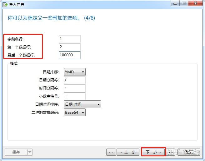 第一个数据行:2(表示从第2行开始导入数据,因为第1行是列字段名)