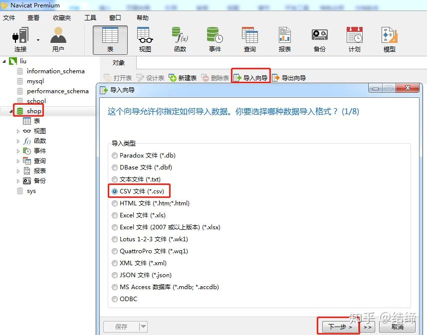 1.新建一个数据库→导入向导→导入类型(和excel文件类型一致)