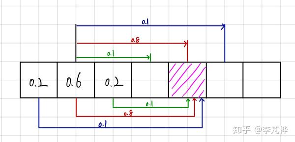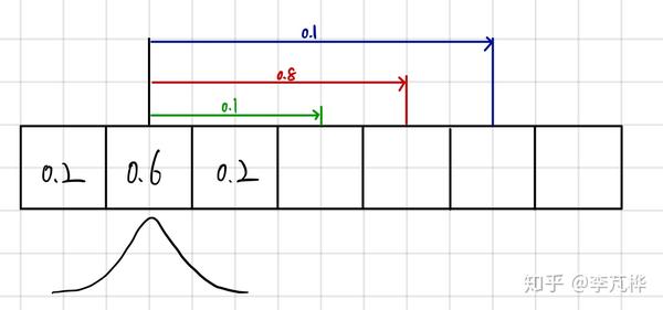 连续的高斯分布所表示的小车位置的预测更新我没找到(不好意思),但就 离散情况 的话还是有的,就是 全概率公式 。以下图为例,假设t-1 时刻,小车的位置分布概率如图所示,到了t 时刻,预测小车向前运动了3米(3个格子),但由于模型的不确定性和噪音,我们不能保证小车精确地向前走了3米,根据概率分布,我们可以假设小车有80%的概率往前走了3米,10%的概率往前走了两米,而另有10%的概率往前走了4米。