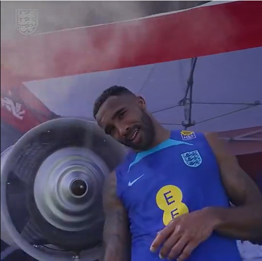 由于卡塔尔当地白天的气温过高,英格兰足球队队员不得不在训练之时使用球场的喷雾设备来降温