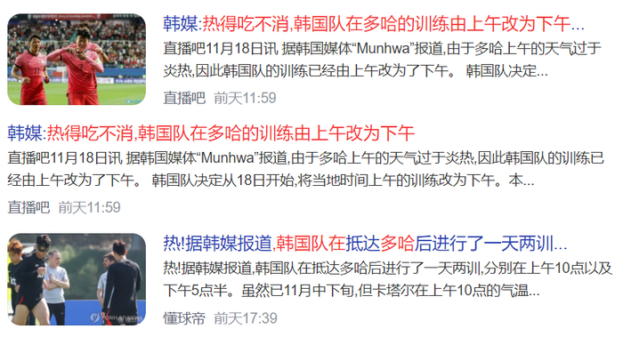 据韩国媒体报道,韩国队于当地时间11月16日和17日上午10时进行了训练,当时的气温在30