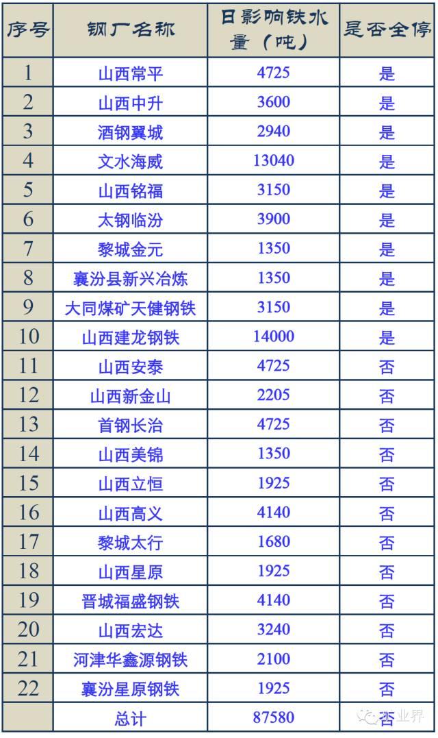 经媒体披露,停产潮波及了山东至少四次,停产企业主要包括火电、钢铁、焦化、冶炼、建材等污染严重的行业,公开资料显示,共有800多家(其中400余家未在文中列出),主要为临沂地区。