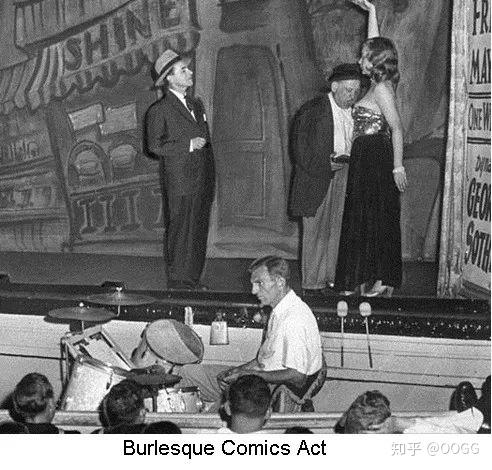 于是喜剧表演中充满了紧凑且粗俗、闹剧一般的混乱感。“追女孩、挣钱、拜金的妻子和唠叨的岳母、淫荡饥渴却又难以掌控的女性、对威权的蔑视”,这些都是当时表演中的重要主题。