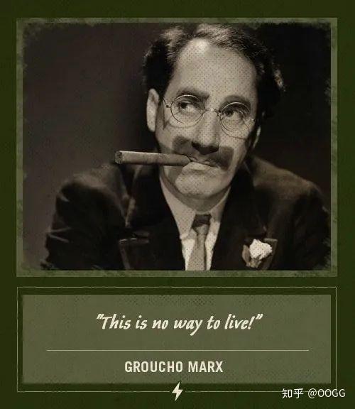 “无路可活!”格鲁乔马克思如是说,眼镜+雪茄+怪诞小胡子,他或许是美国喜剧中最早的ICON型人物。