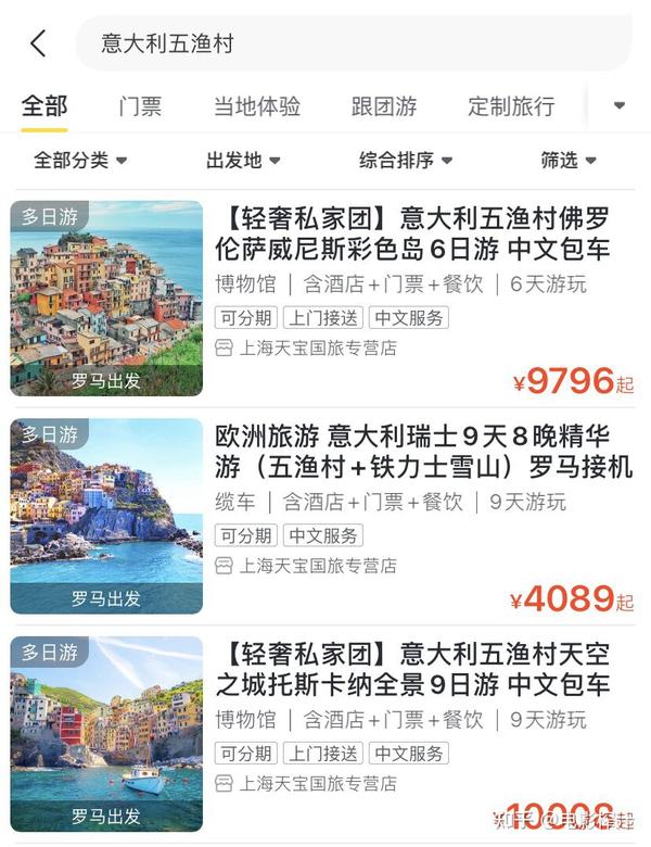 中国旅游APP上的五渔村景点产品