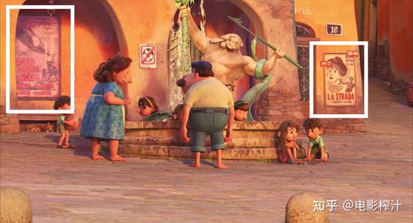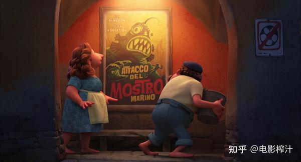 片中卢卡父母在镇上找他时偶遇了一张以卢卡叔叔为原型的海报,上面写着《海怪的攻击》。