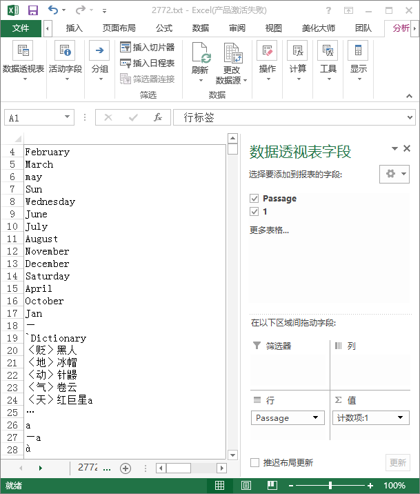 缩短列宽度,再把计数区排一下序,你的私人词频表就出现啦!!!