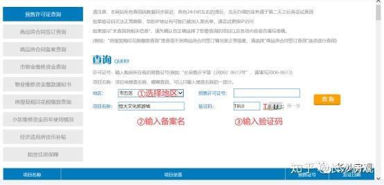 ②输入的项目名称应为该楼盘的 备案名称 ,这个可以在其他网站上搜索到相关信息,或者在楼盘现场询问工作人员。