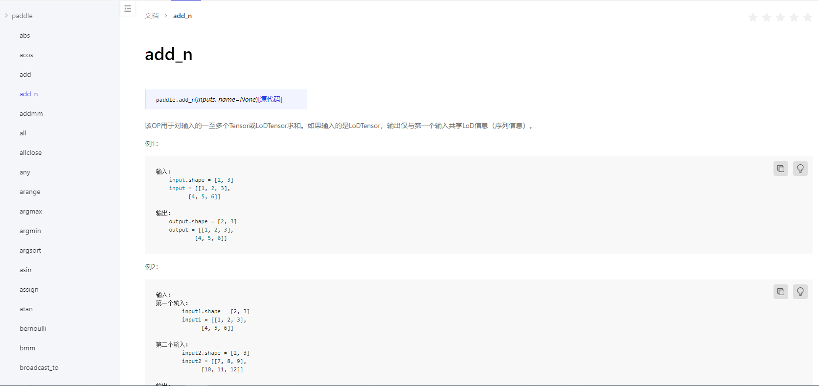 最近两年,我作为平台、框架方,支持比较多的业务,很多业务方同学在机器学习框架方面可能真的只是调参侠,他们不懂得数据读取的原理,也不懂多线程、流水线,通常会逮着几篇技术pr文档,去copy其中的代码,稍微好一些的会自己主动研究文档,研究某个api或者某类操作的更高效的使用方法,但是很少有人跳进代码,我这里指跳进python端的代码去看一些操作(这里不用质疑,真的存在,如果你有step in python的代码习惯,那么恭喜你,你其实超过了很大一部分算法工程师)。所以,在大部分算法工程师眼里,其实文档中告诉API如何使用还就罢了,真正他们需要的是example,能够直接复制就能run的example,所以所谓“文档的好坏”其实不是解释API,而是给一个或者多个例子,如何去run起来,但是呢,通常文档给了example,也通常不会覆盖到API接口中所有的args,阅读文档说明,step in code是特别重要的,这点TensorFlow做得很不错,频率使用较高的API,能够很快的导航到github repo的文件, 你可以很快地去看一些实现,来弥补文档中args的说明文档的不足,之前PaddlePaddle坦白来讲做的一般,但是最近开始做的不错了,我比较喜欢的能够跳进github repo去读python源码,对我而言,在一些API上,尤其是不熟悉的API上很有用,这里也建议一些算法同学,能够多多地进去看一些API的基础实现,尤其是python端的,对你理解还有提升自己python的编程水平有好处的,千万不要把python当作胶水语言;