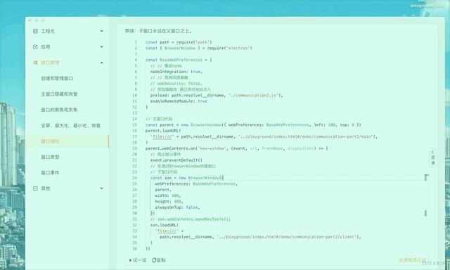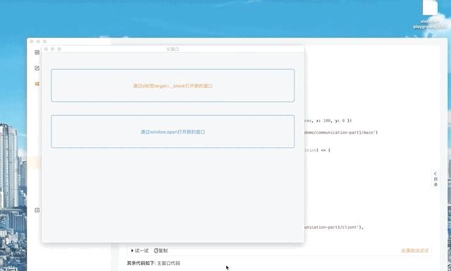 主进程可以控制窗口许多行为,这些行为会在后续文章一一列举;以下以主进程控制窗口建立新窗口的行为为例。
