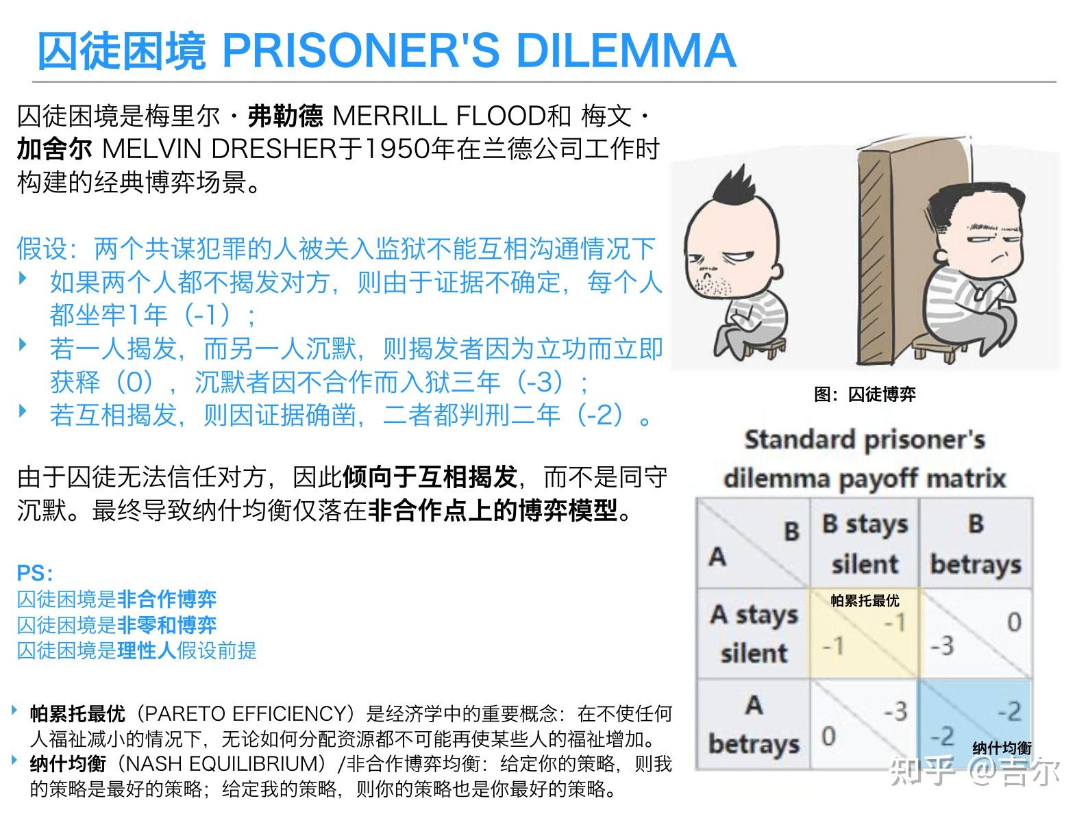 涉及到的两个概念是帕累托最优及纳什均衡,可以简单做个介绍。