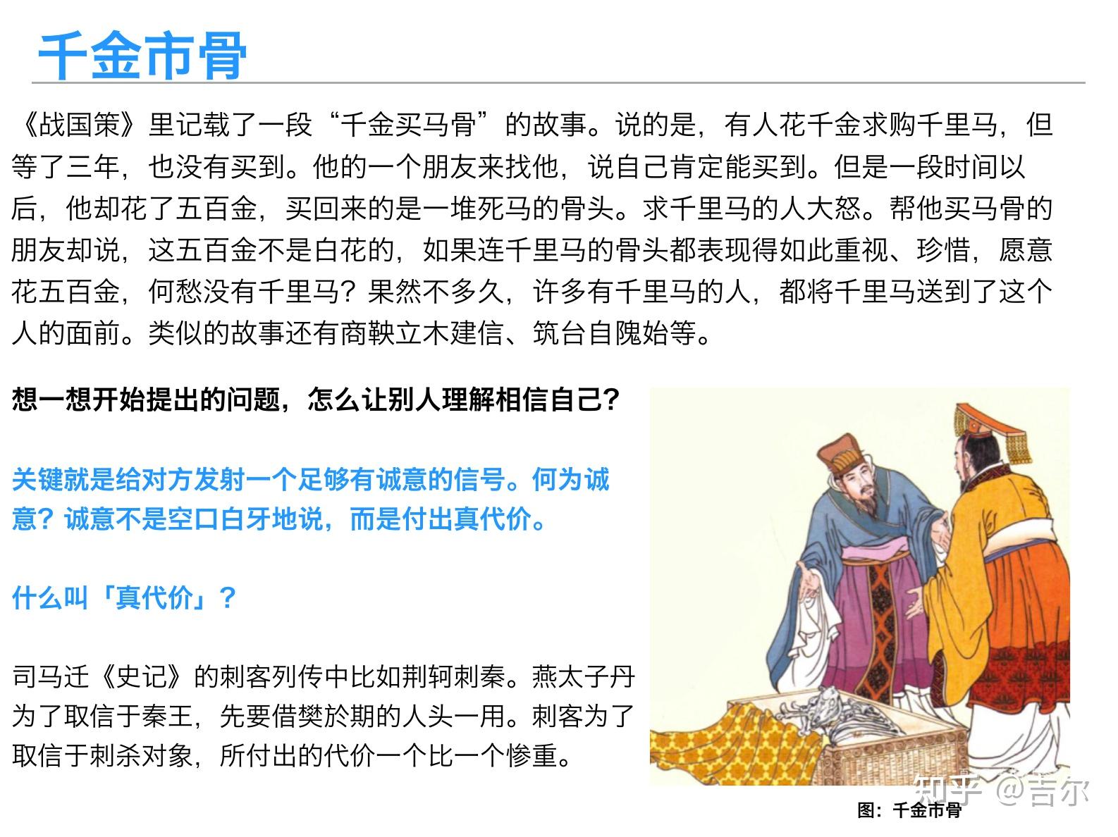 关于何为“足够有诚意的信号”,有一个小故事可以帮助深入理解。这就是 - 千金市骨