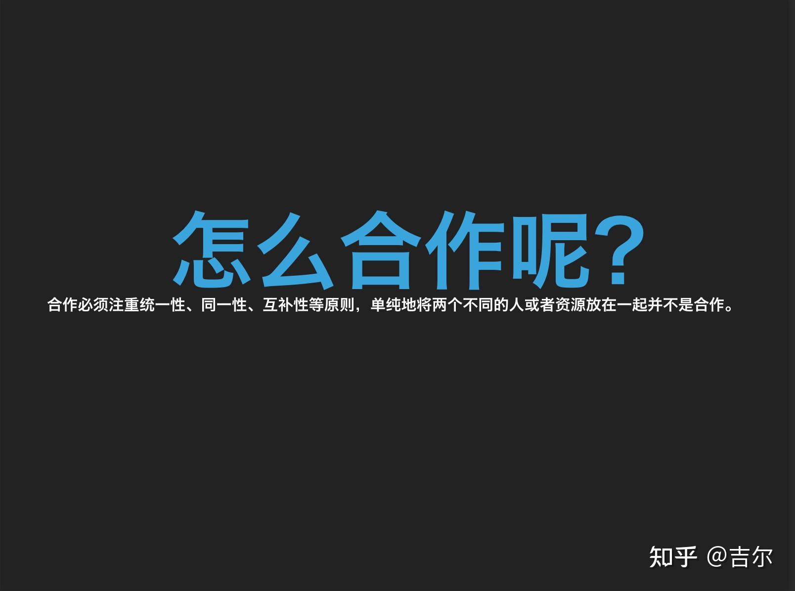 答案不言而喻:合作必须注重统一性、同一性、互补性等原则,单纯地将两个不同的人或者资源放在一起并不是合作。