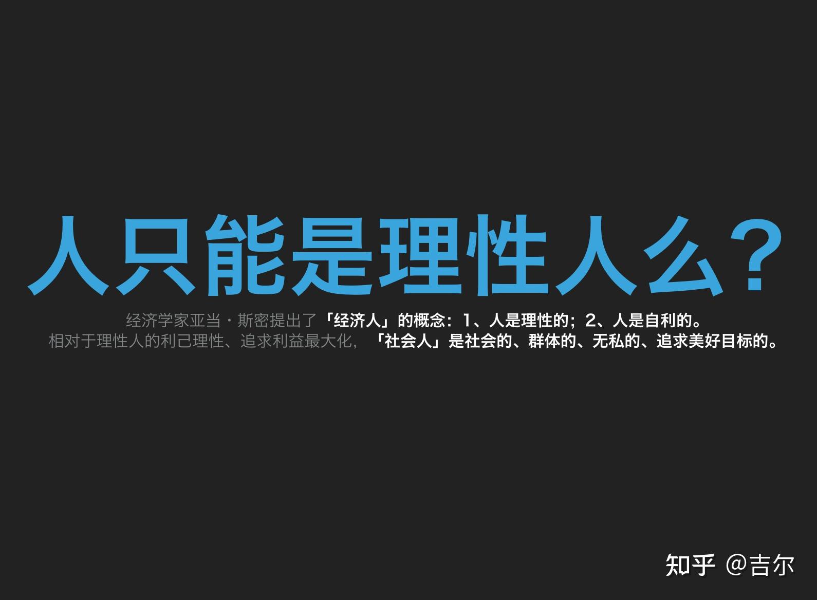 刚才提到的两个例子都是基于“理性经济人”为基础假设为前提进行思考的,那么抛出第一个思考的问题: 人只能是理性经济人么? 能否进行“非自利为基础的”合作及共赢呢?