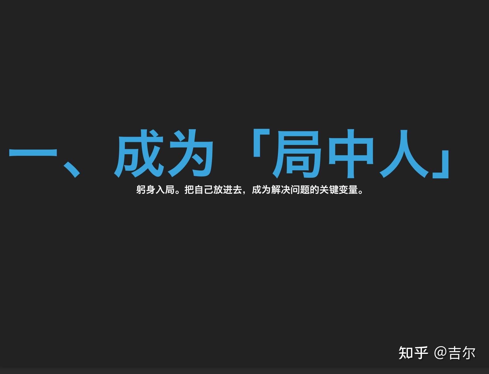 - 做个社会人,躬身入局,成为「局中人」;
