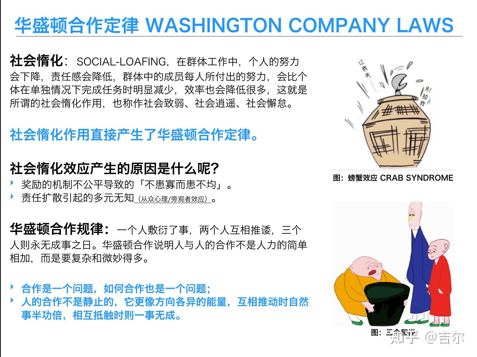 华盛顿合作定律要说透需要了解它的前世今生。涉及到的概念较多,比如社会惰化、多元无知和责任扩散等,感兴趣的可以花点功夫稍加了解。