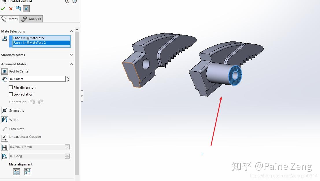 点击Mate ,切换到高级配合中的轮廓中心配合。