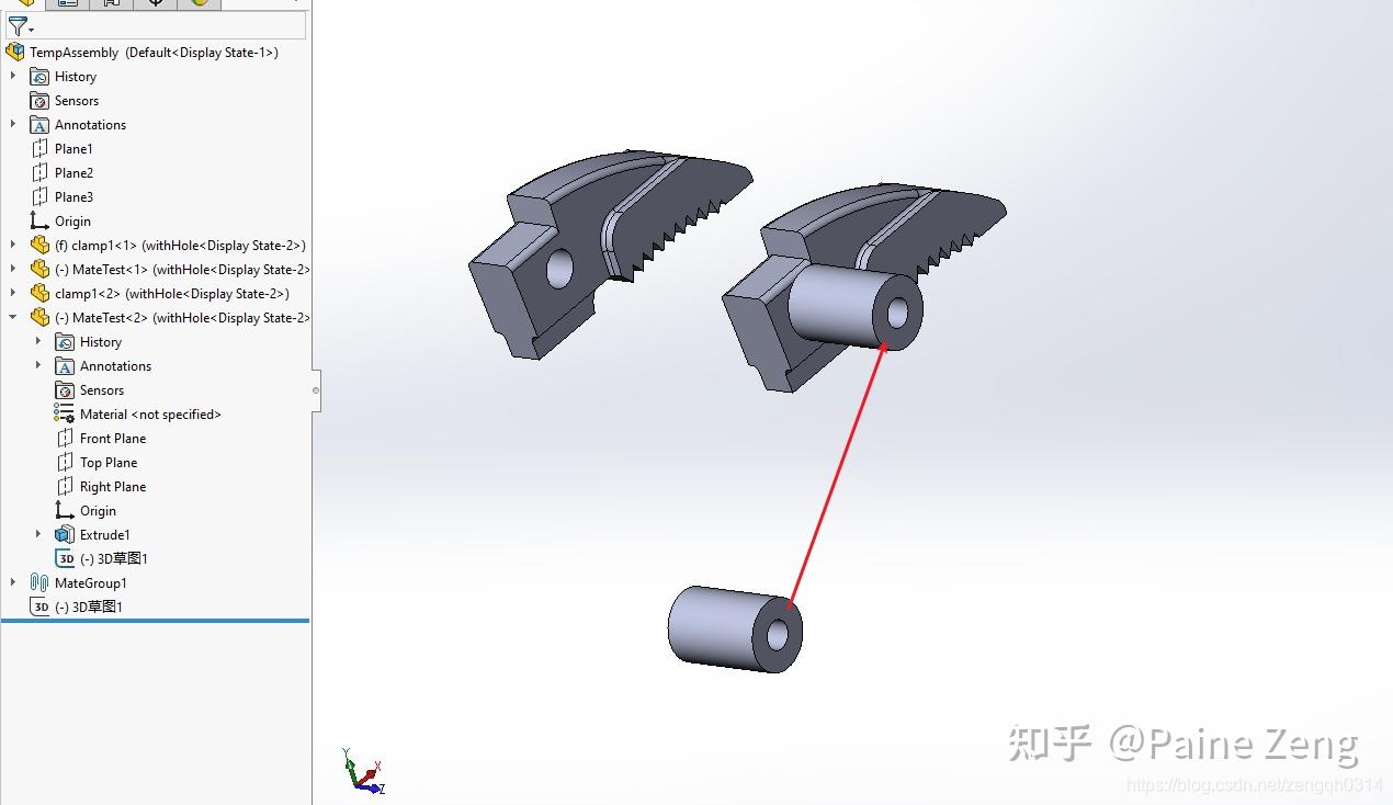 今天有网友咨询高级配合中的面中心配合无法生成。所以我特意来测试了一下,做个总结。 先打开简单的装配体,确认配合操作。