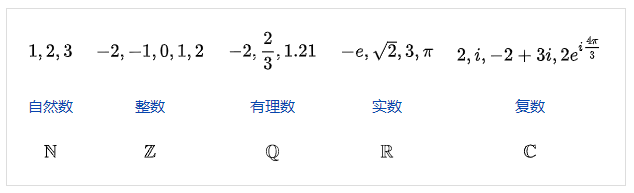 则包含于实数中,连续的量即是以实数来表示的。实数则可以被进一步广义化成