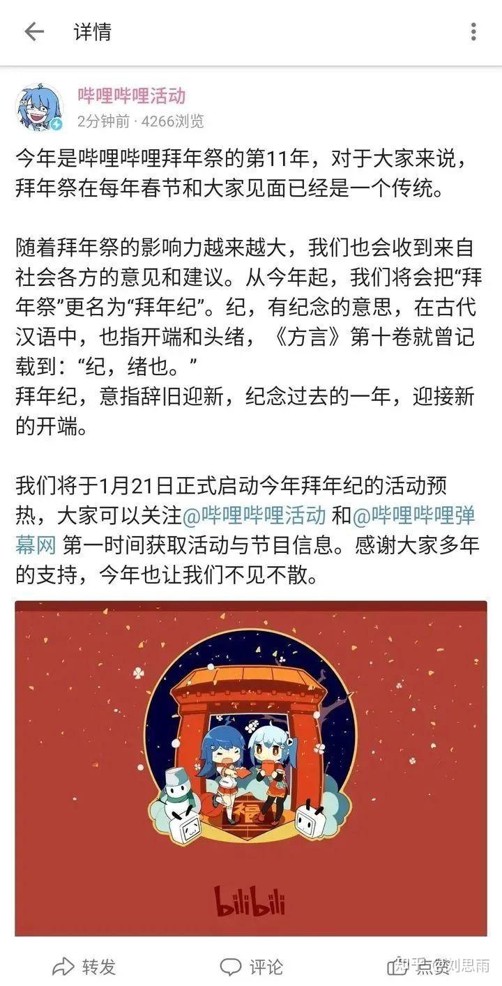 日本文化不再像以前那样流行了,国潮取而代之。B站觉察到了风向,开始主动“去日本化”。比如今年年初B站宣布,将沿袭11年的“拜年祭”,改成“拜年纪”。