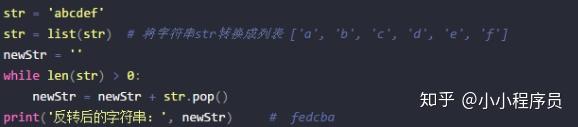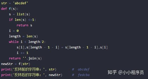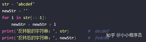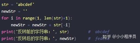 说明:字符串作为序列,可以进行索引处理,所以我们先遍历索引数字,然后倒序提取字母,然后合并成字符串。