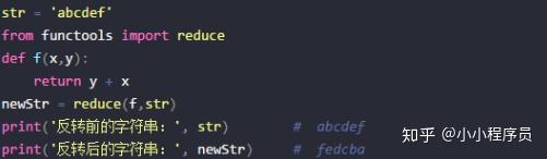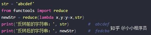 说明:方法10的进阶版,使用lambda匿名函数创建字符串倒序相加函数,然后进行累积相加,得到字符串反转结果。