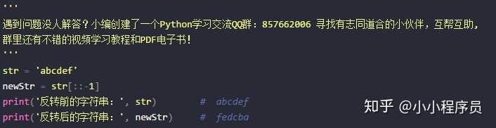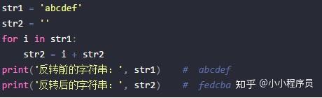 说明:字符串属于序列的一种,我们可以使用for循环遍历字符串,然后,不断反向赋值给变量str2,最后输出变量str2,就完成了字符串反转。