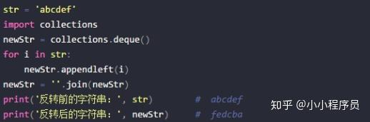 说明:遍历字符串,向左添加入双向队列中,最后使用join()方法合并,实现字符串反转。