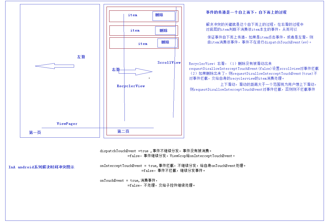 A ndroid中所有事件的传递都是自上而下,然后自下而上的一个传递过程,直到事件被消费,结束掉。