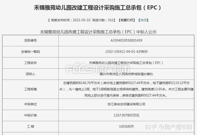 5月,禾锦雅苑幼儿园改建工程已进行了项目中标公示。