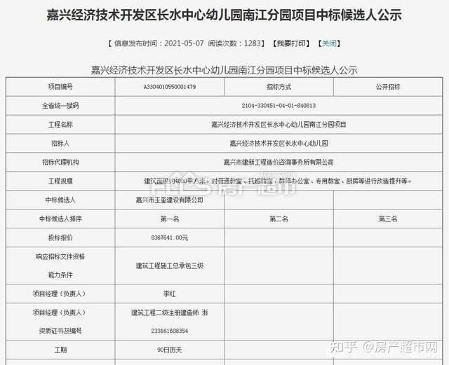 5月,长水中心幼儿园南江分园项目已进行了中标公示。