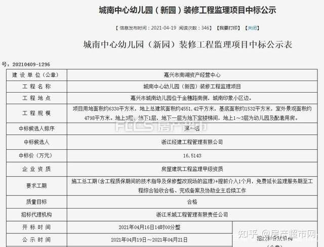 4月,城南中心幼儿园(新园)装修工程监理项目已进行了中标公示。